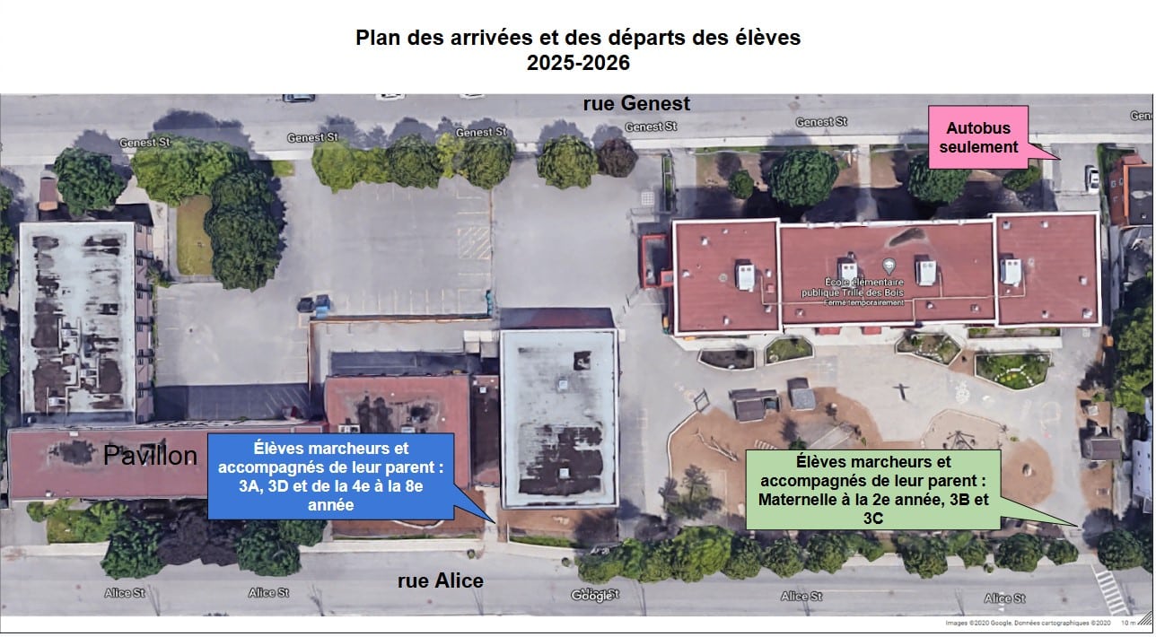 Veuillez suivre ce plan pour déposer ou venir récupérer votre enfant en début ou fin de journée scolaire :
